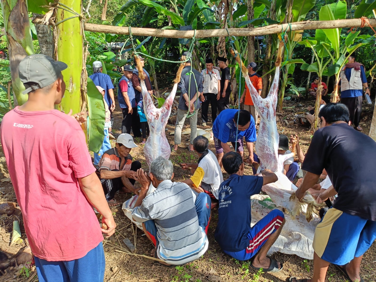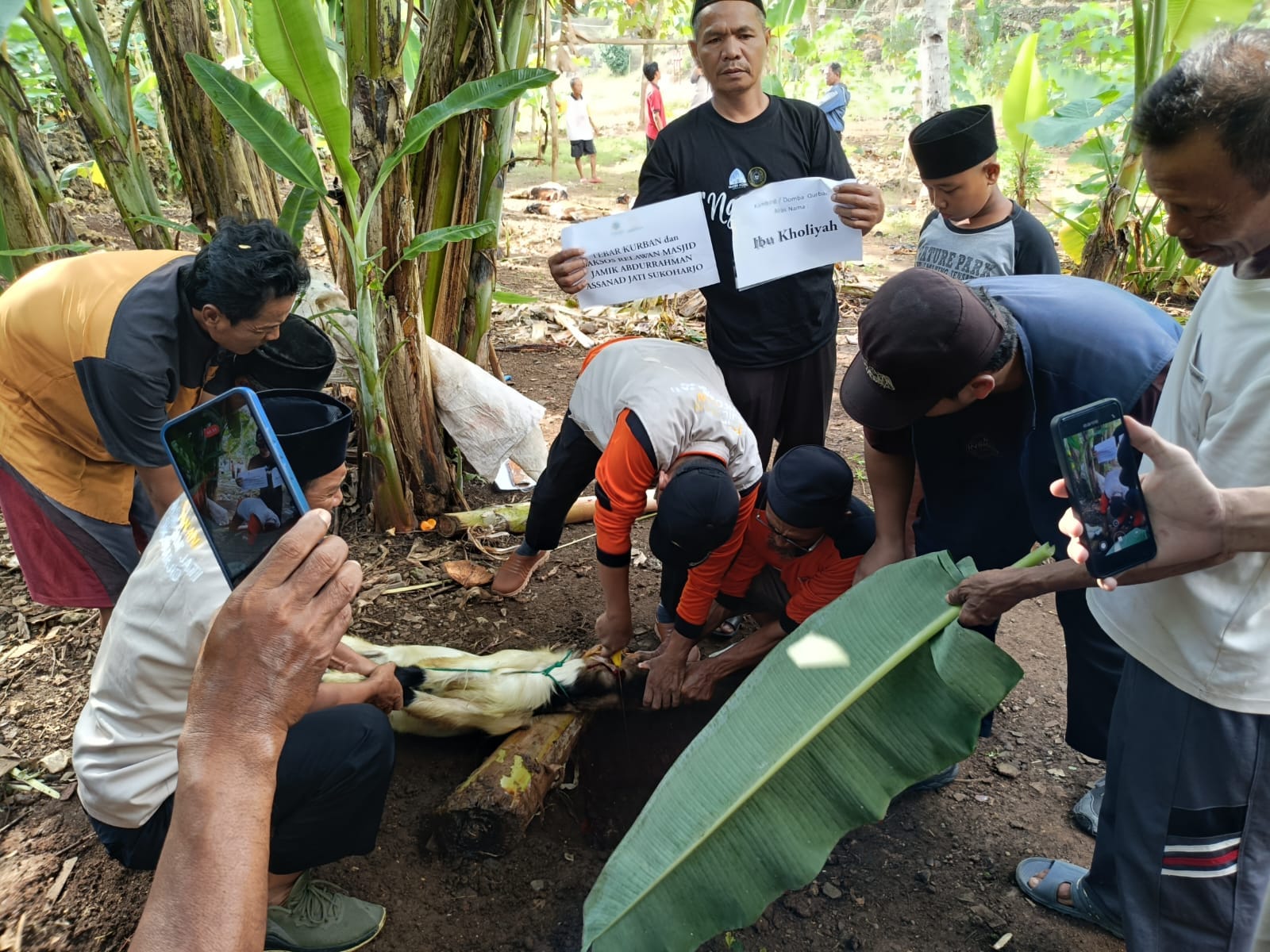 Kegiatan ini mencakup penyembelihan hewan kurban, pembagian pakaian bekas layak pakai, serta penyaluran beras dan sayuran kepada warga setempat.
